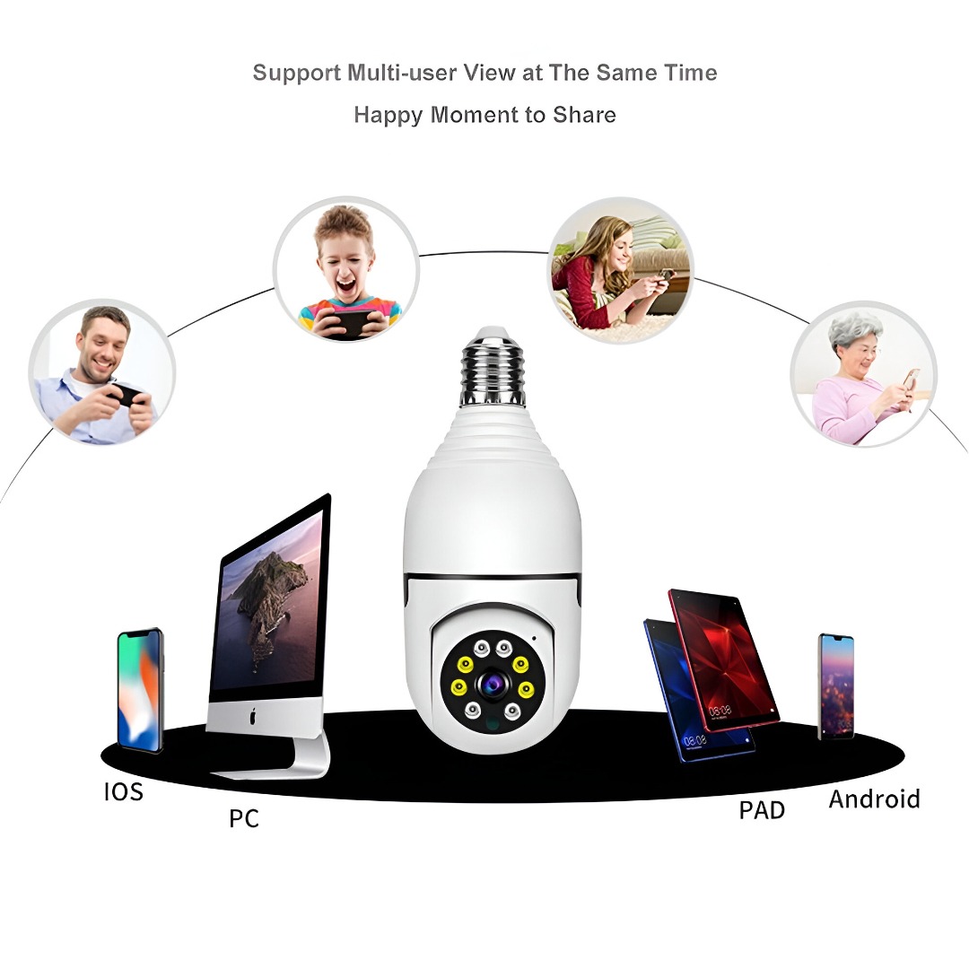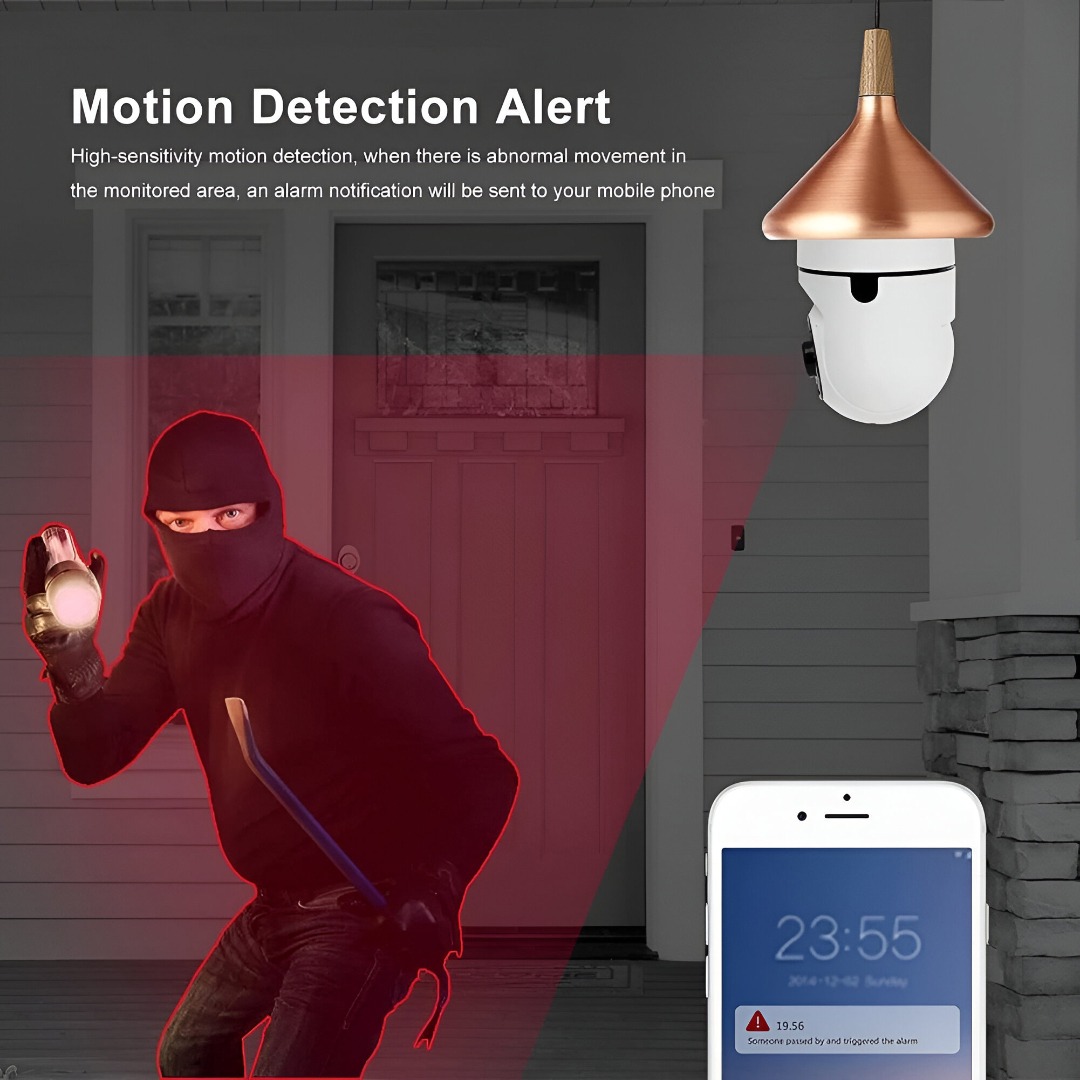 Inteligentne bezpieczeństwo domu w zwykłej oprawce żarówki. Pełny podgląd 360° i zdalny dostęp z telefonu.